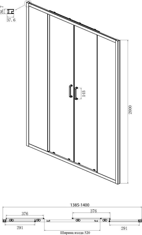 - Дверь: две раздвижные двери, два неподвижных стекла
