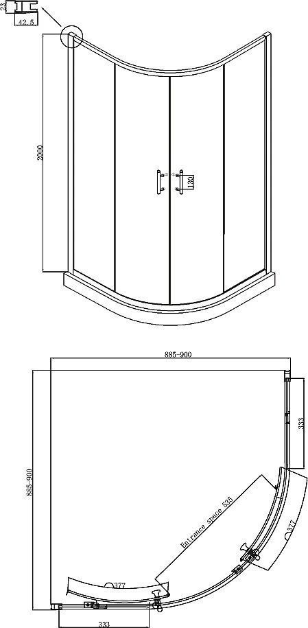 Душевое ограждение Ambassador Kingston, размер 900х900х2000 мм, профиль хром, стекло прозрачное 6 мм. Габариты регулировки (885-900)х(885-900)х2000 мм, ширина входа 535 мм. Поддон приобретается отдельно.