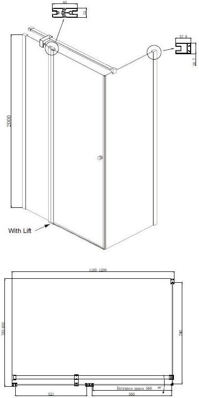 Душевое ограждение Ambassador Nord с держателем, размер 1200х800х2000 мм, профиль хром, стекло прозрачное 6 мм. Габариты регулировки (1185-1200)х(785-800)х2000 мм, ширина входа 560 мм. Поддон приобретается отдельно. Дверь 120 см, душевая стенка 80 см.