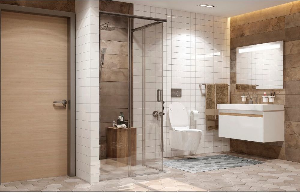 - Душевое ограждение устанавливается в облицованный керамической плиткой угол ванной комнаты.
