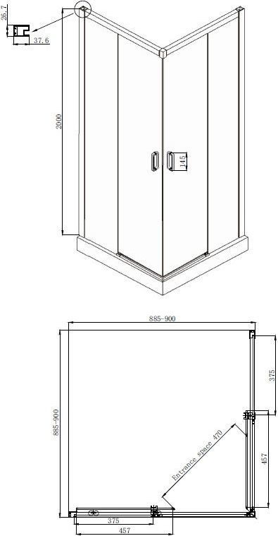 Душевое ограждение Ambassador Queen, размер 900х900х2000 мм, профиль хром, стекло прозрачное 6 мм. Габариты регулировки (885-900)х(885-900)х2000 мм, ширина входа 470 мм. Поддон приобретается отдельно.