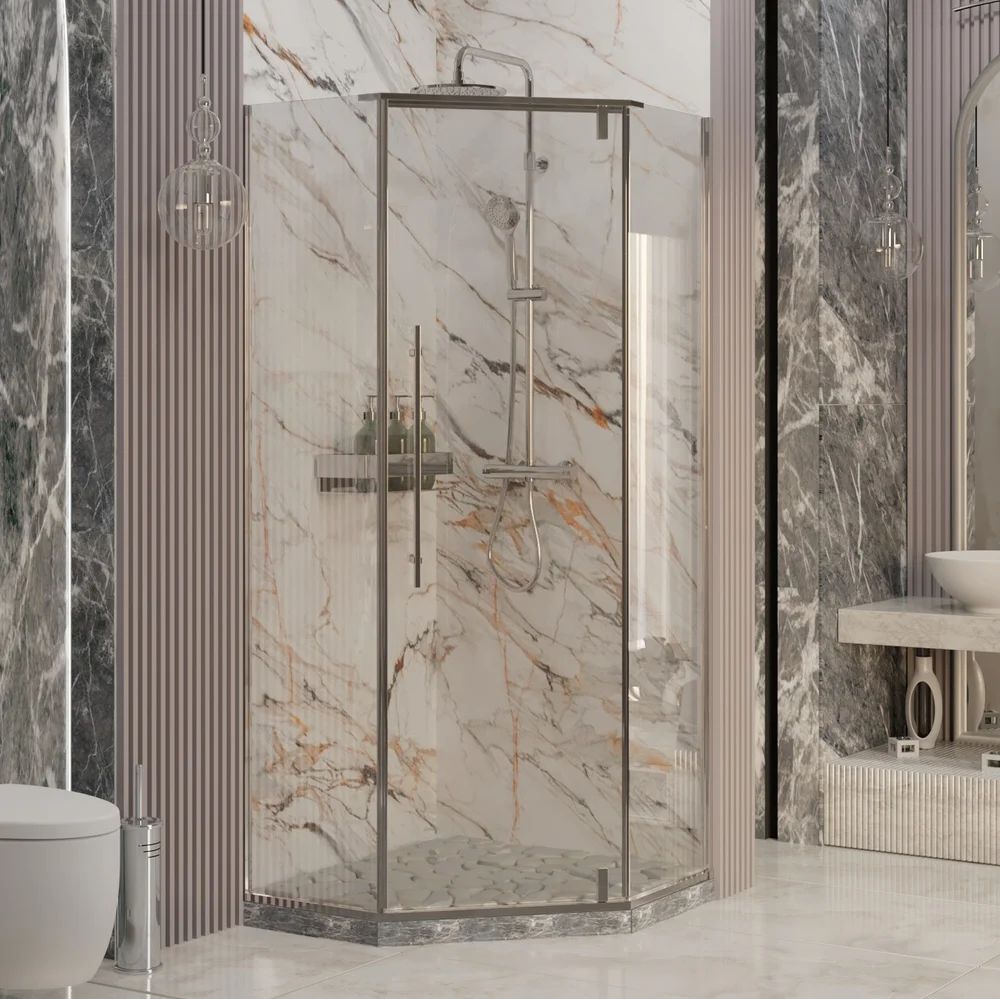 Душевое ограждение Ambassador Ritz, размер 900х900х2000 мм, профиль хром, стекло прозрачное 8 мм. Габариты регулировки (885-900)х(885-900)х2000 мм, ширина входа 602 мм. Поддон приобретается отдельно.