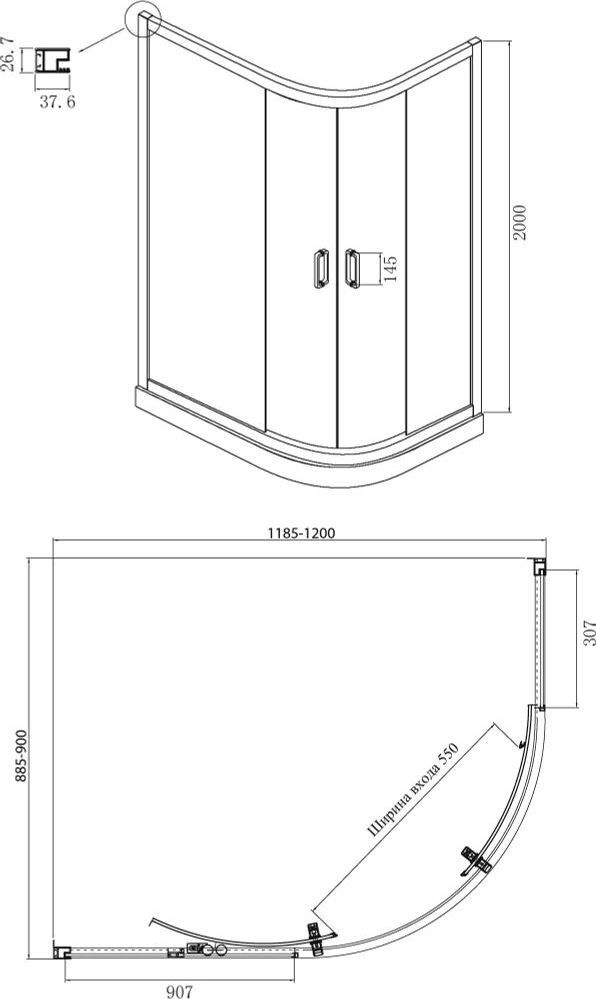 - Тип: душевое ограждение