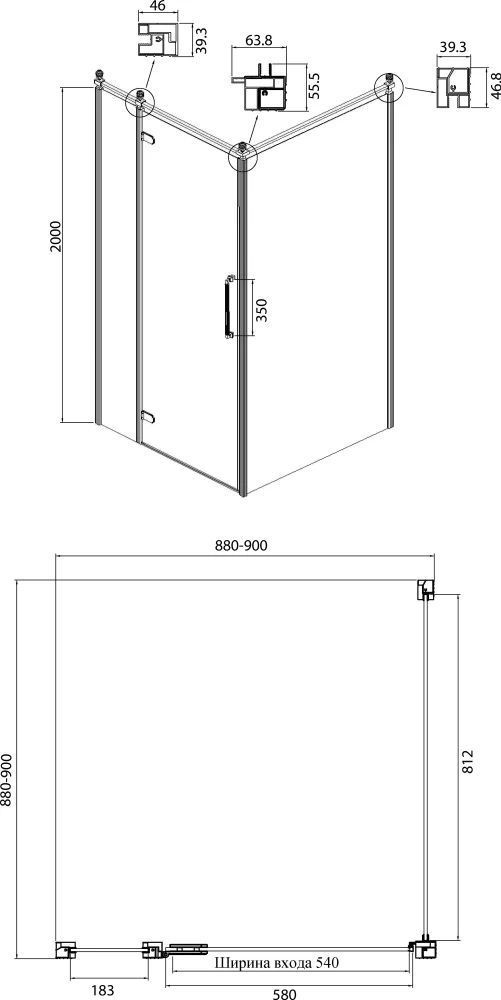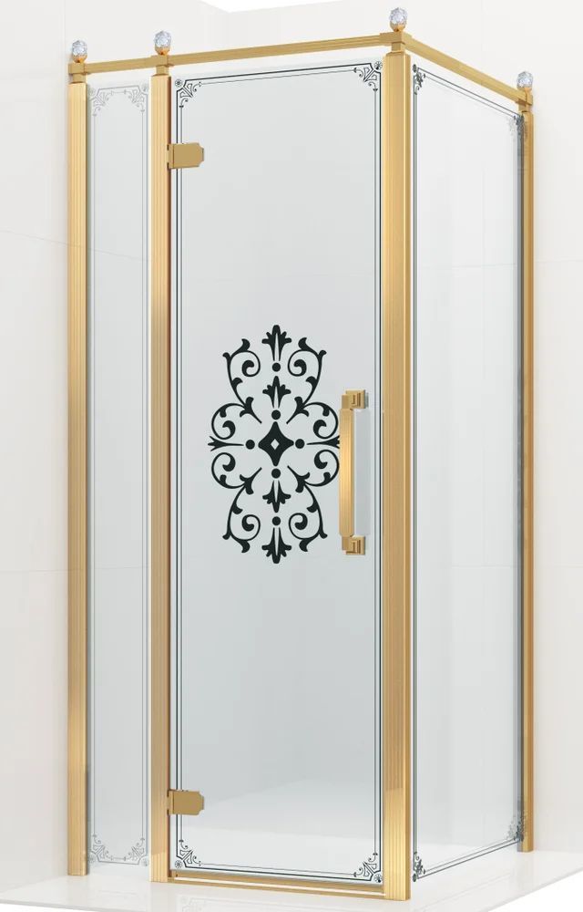 Душевое ограждение Ambassador Royal, размер 900х900х2000 мм, профиль золото, стекло прозрачное 8 мм. Габариты регулировки (880-900)х(880-900)х2000 мм, ширина входа 540 мм. Поддон приобретается отдельно.