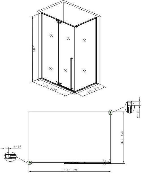 Душевое ограждение Aquanet Ideal, размер 1400х900х2000 мм, профиль хром, стекло прозрачное. Габариты регулировки (1375-1390)х(875-890)х2000 мм. Дверь 140 см, душевая стенка 90 см.