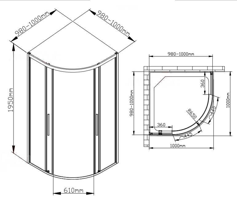 Характеристики Душевое ограждение Avacan (HC100MT)