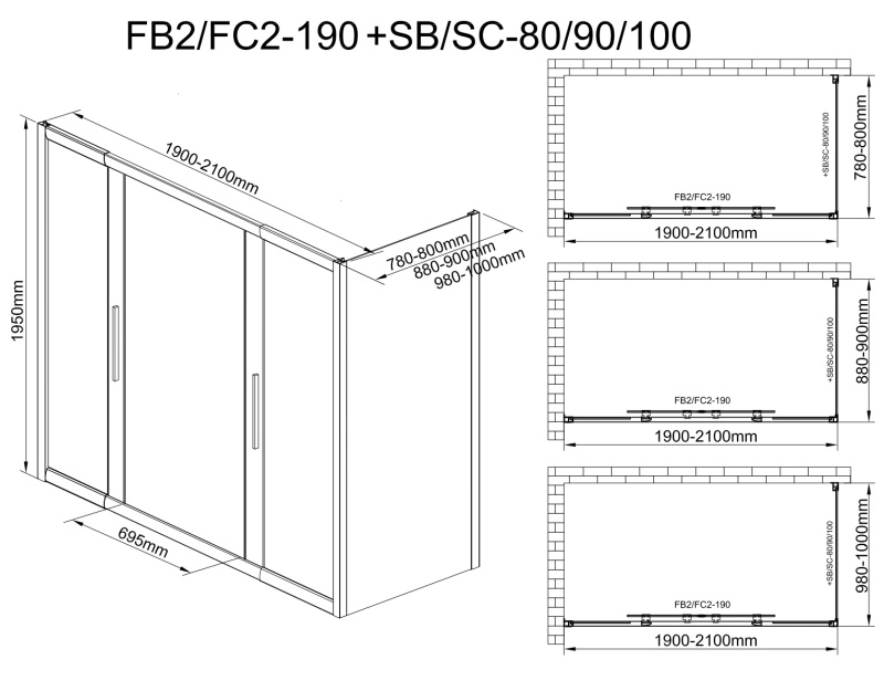 Характеристики Душевое ограждение Avacan (FB2-190-SB90MT)