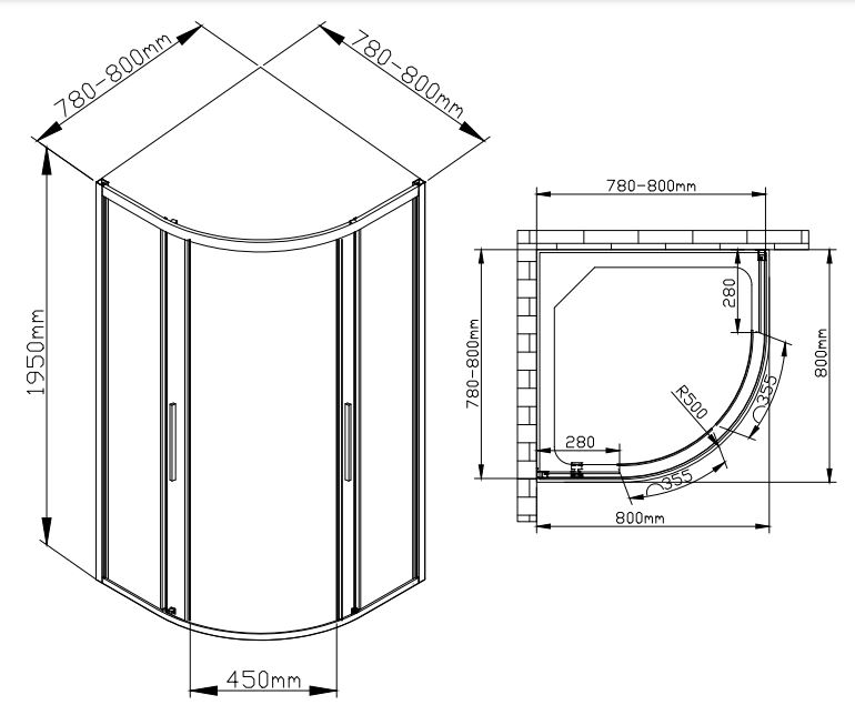 Душевое ограждение Avacan 80х80 см HC80, хром/прозрачное