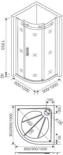 Душевое ограждение Bas Galaxy R-100-C-CH, размер 1000х1000х1950 мм, профиль хром, стекло прозрачное. Габариты регулировки (990-1010)x1950 мм. Вход 500мм. Поддон приобретается отдельно.
