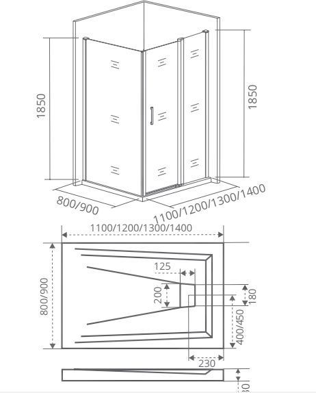 Душевое ограждение Bas Infinity WTW+SP G-CH, размер 1400х800х1850 мм, профиль хром, стекло матовое. Вход 570 мм. Поддон приобретается отдельно. Дверь 140 см, душевая стенка 80 см.