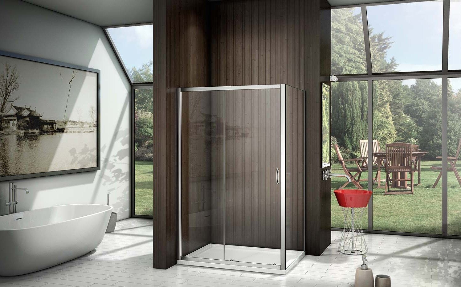 Душевое ограждение Bas Latte WTW+SP C-WE, размер 1400х800х1850 мм, профиль алюминий, стекло прозрачное. Вход 570 мм. Поддон приобретается отдельно. Дверь 140 см, душевая стенка 80 см.