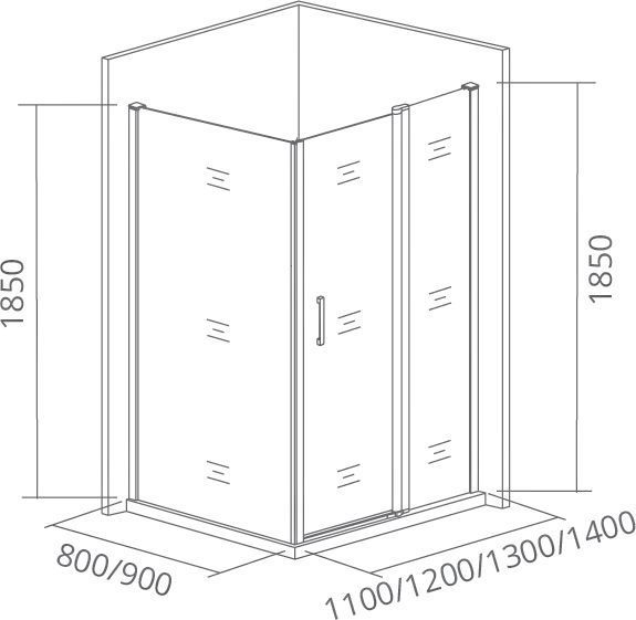 Душевое ограждение Bas Latte WTW+SP G-WE, размер 1300х900х1850 мм, профиль алюминий, стекло матовое. Вход 530 мм. Поддон приобретается отдельно. Дверь 130 см, душевая стенка 90 см.