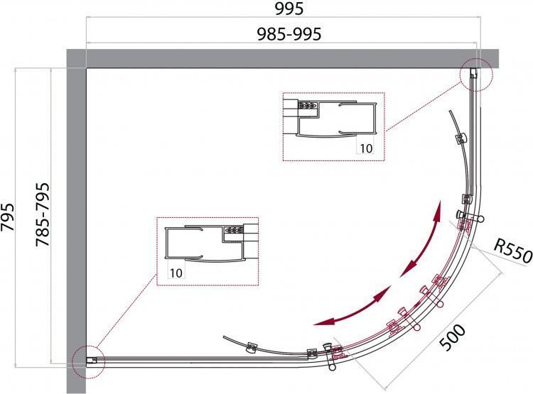 Душевое ограждение BelBagno Uno-195 RH-2 1000х800х1950 мм, стекло - прозрачное, 5 мм, профиль - хром. Поддон приобретается отдельно. Ширина входа 500 мм. Габариты с регулировками (988-1000)х(788-800) мм.