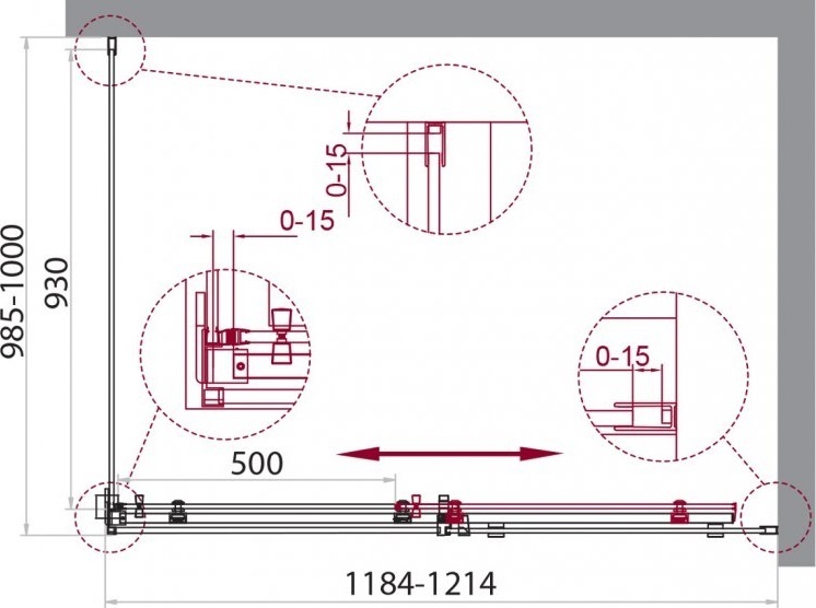 - Регулировка ширины: предусмотрена за счет боковых профилей