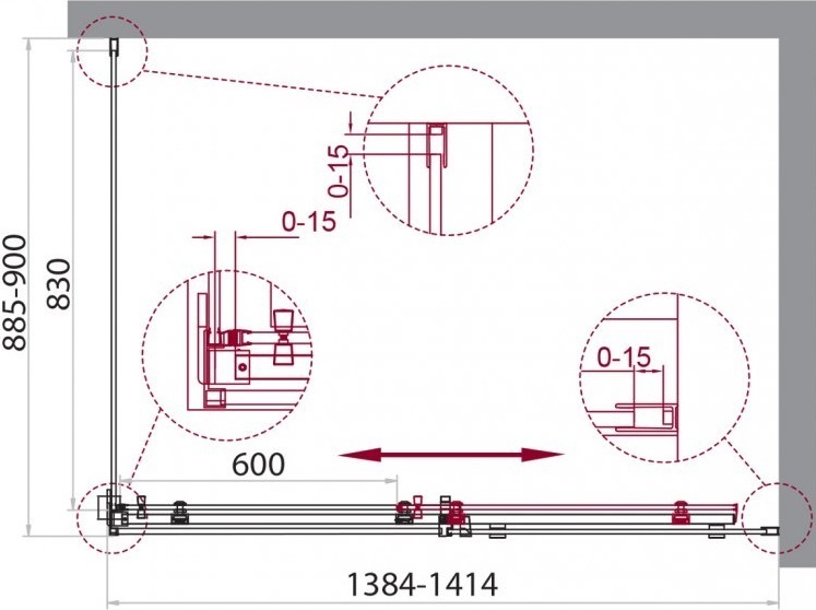 - Габариты с диапазоном регулировок: (1380-1410)x(883-898)x1950 мм