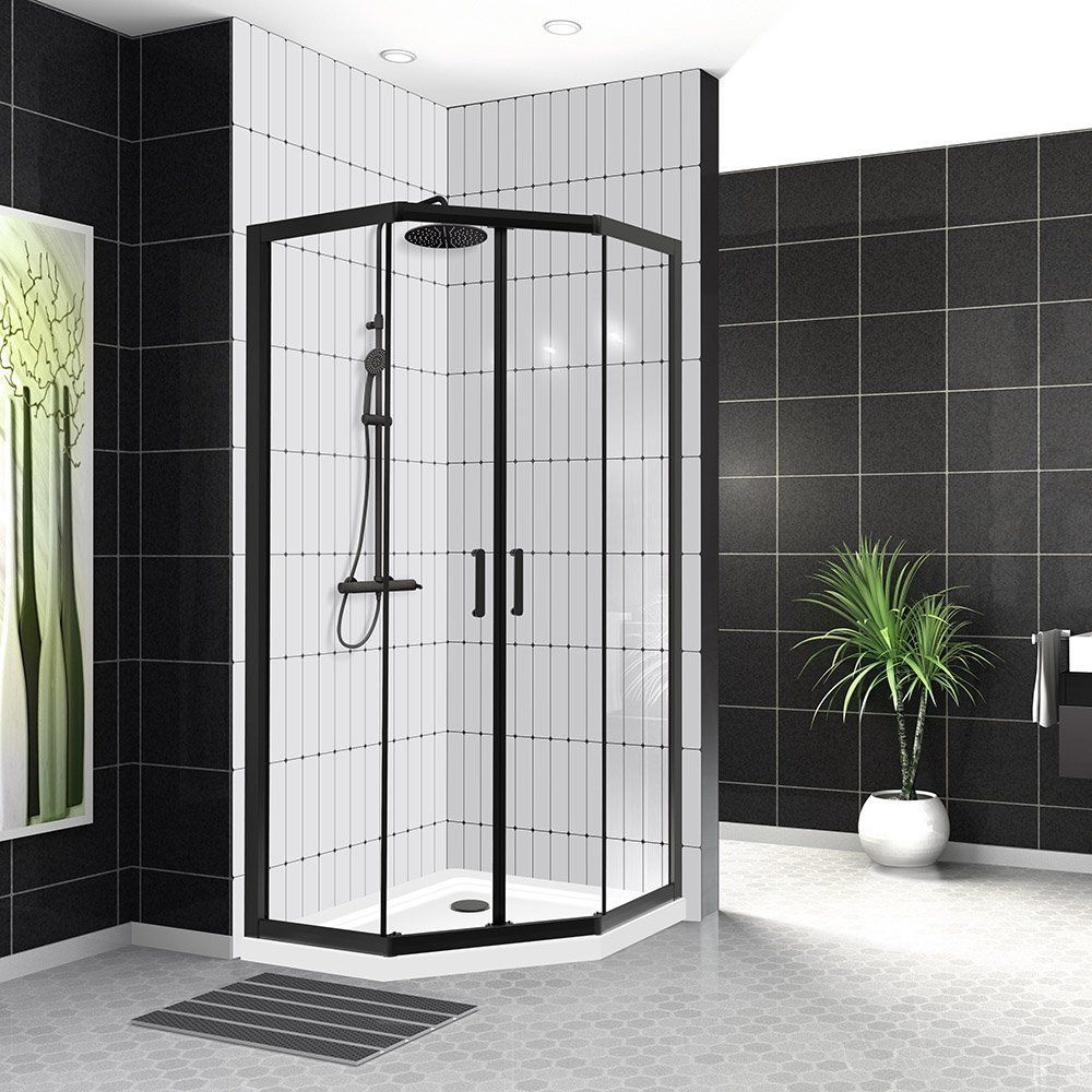 Душевое ограждение BelBagno Uno-195 P-2 900х900х1950 мм, стекло - прозрачное, 5 мм, профиль - черный. Поддон приобретается отдельно. Ширина входа - 430 мм.