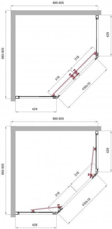 - Габариты с регулировками: (885-905)х(885-905) мм