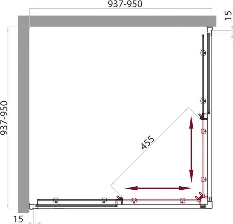 Душевое ограждение BelBagno Uno A-2 950х950х1850 мм, стекло - матовое, 5 мм, профиль - хром. Габариты с регулировками (937-950)x(937-950) мм. Ширина входа 455 мм. Поддон приобретается отдельно.
