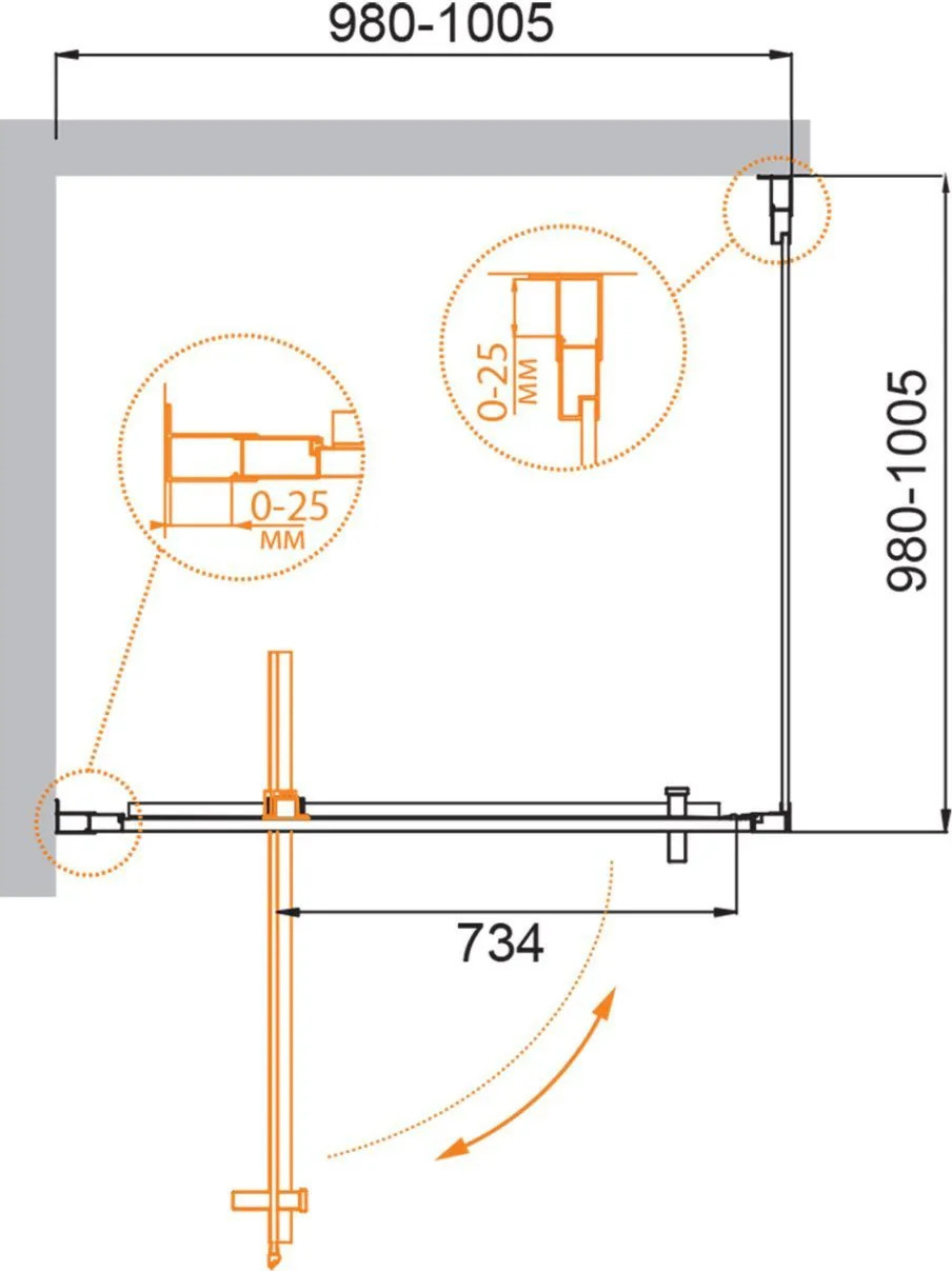 Описание Душевое ограждение Cezares MOLVENO-A-1-100-C-Cr-IV