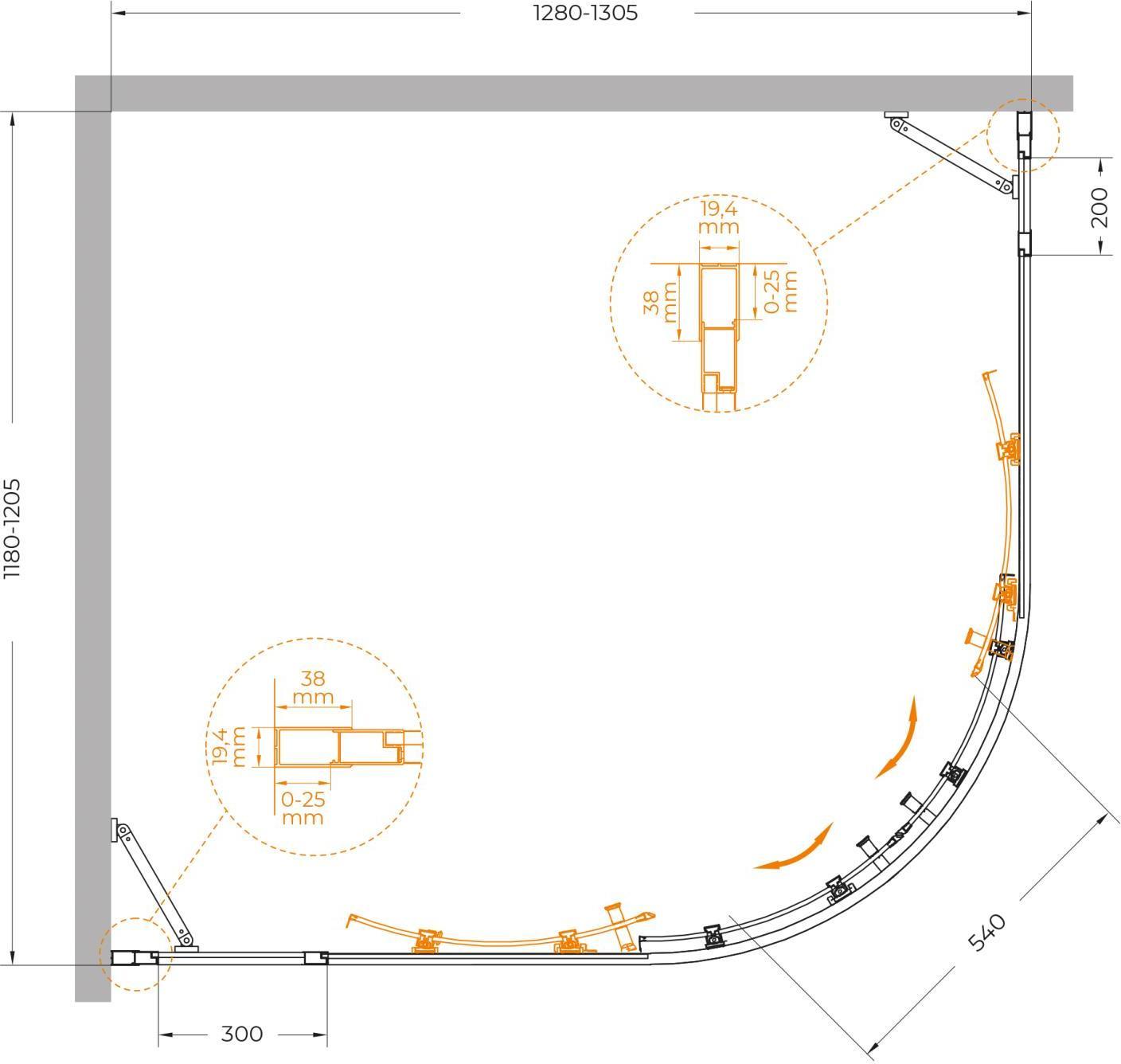 Описание Душевое ограждение Cezares MOLVENO-RH-22-130/120-C-BORO-IV