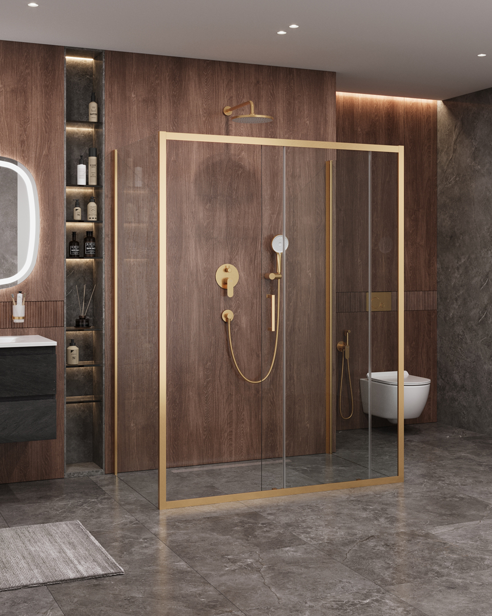 Душевое ограждение Cezares 160x90 см MOLVENO-AH-12-160/90-C-BORO-IV, брашированное золото/прозрачное