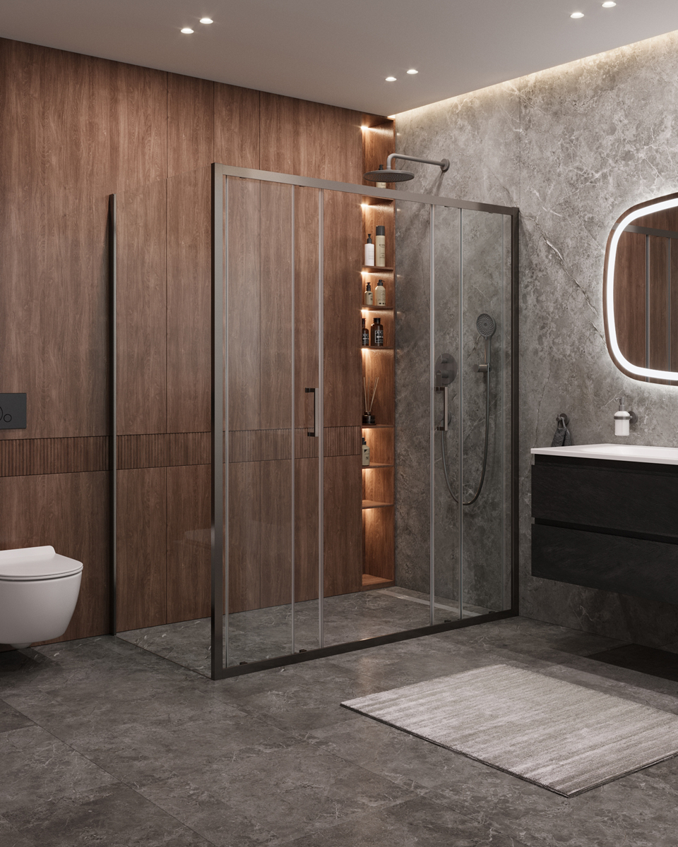 Душевое ограждение Cezares 170x90 см MOLVENO-AH-2/1-170/90-C-GM-IV, оружейная сталь/прозрачное