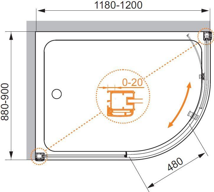 Описание Душевое ограждение Cezares ANIMA-W-RH-1-120/90-P-Cr