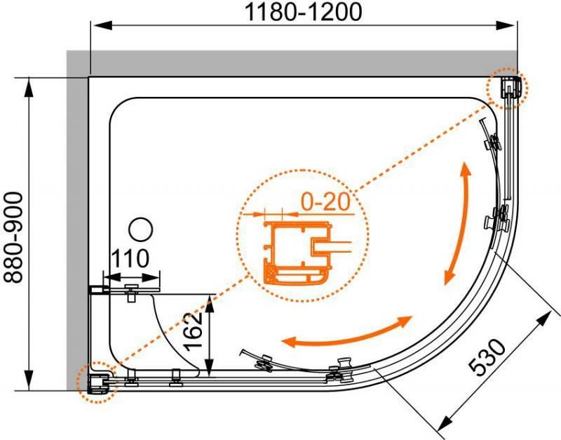 Характеристики Душевое ограждение Cezares (ANIMA-W-RH-2-120/90-P-Cr-L)