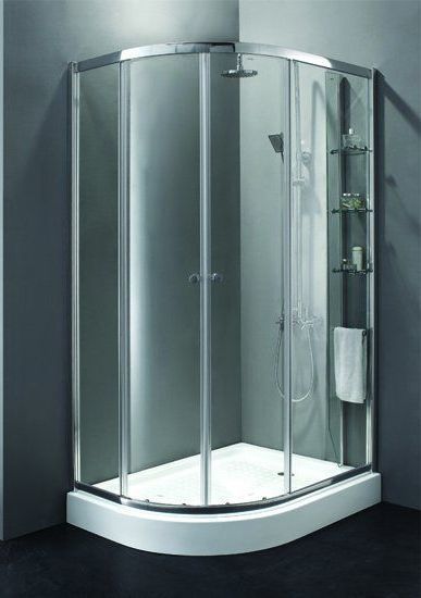 - Дополнительная информация: поддон приобретается отдельно, уголок оснащен полочками для душевых принадлежностей