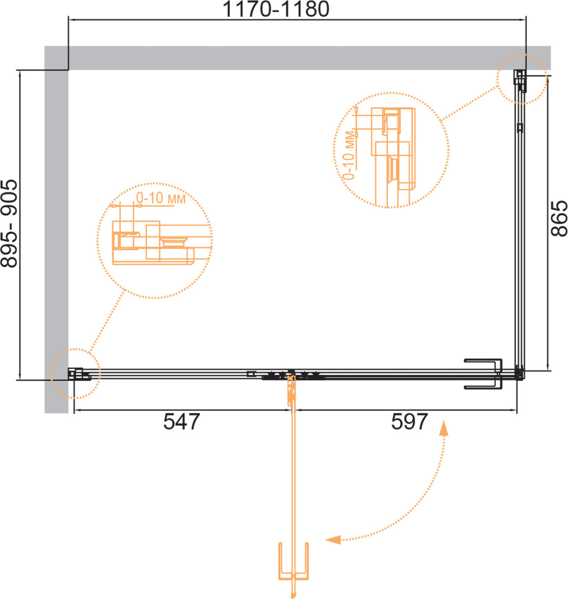 - Габариты с диапазоном регулировок: (1170-1180)x(895-905)x1968 мм
