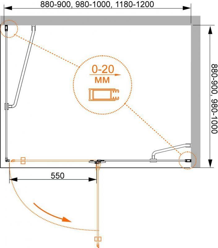 Описание Душевое ограждение Cezares BERGAMO-W-AH-1-100/90-C-Cr-L