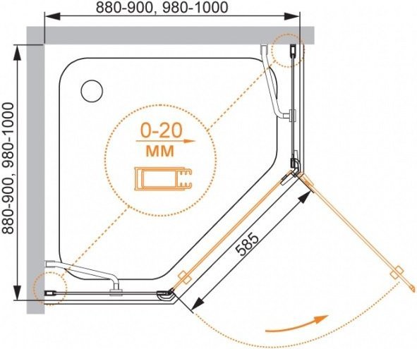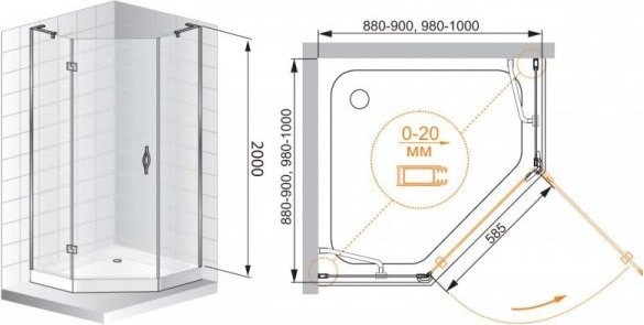 Описание Душевое ограждение Cezares BERGAMO-W-P-1-100-C-Cr-L-IV