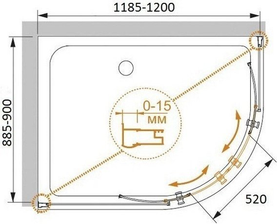 Характеристики Душевое ограждение Cezares (ECO-O-RH-2-120/90-C-Cr)