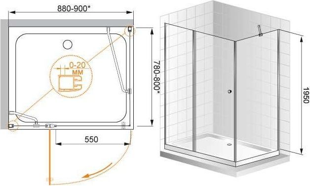 Душевое ограждение ELENA-W-AH-1-90/80-C-Cr с держателями в комплекте, размер 900х800х1950 мм, профиль хром, стекло 6 мм, поддон приобретается отдельно.
