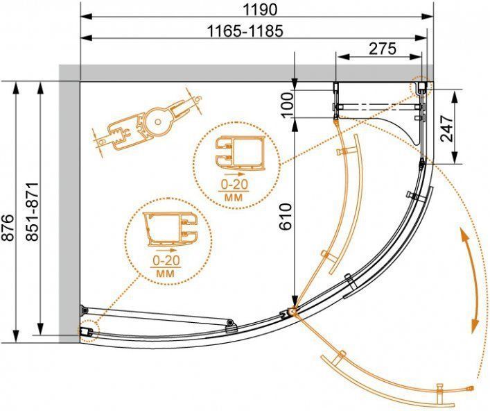 Характеристики Душевое ограждение Cezares (ELENA-W-RH-1-120/90-C-Cr-L)