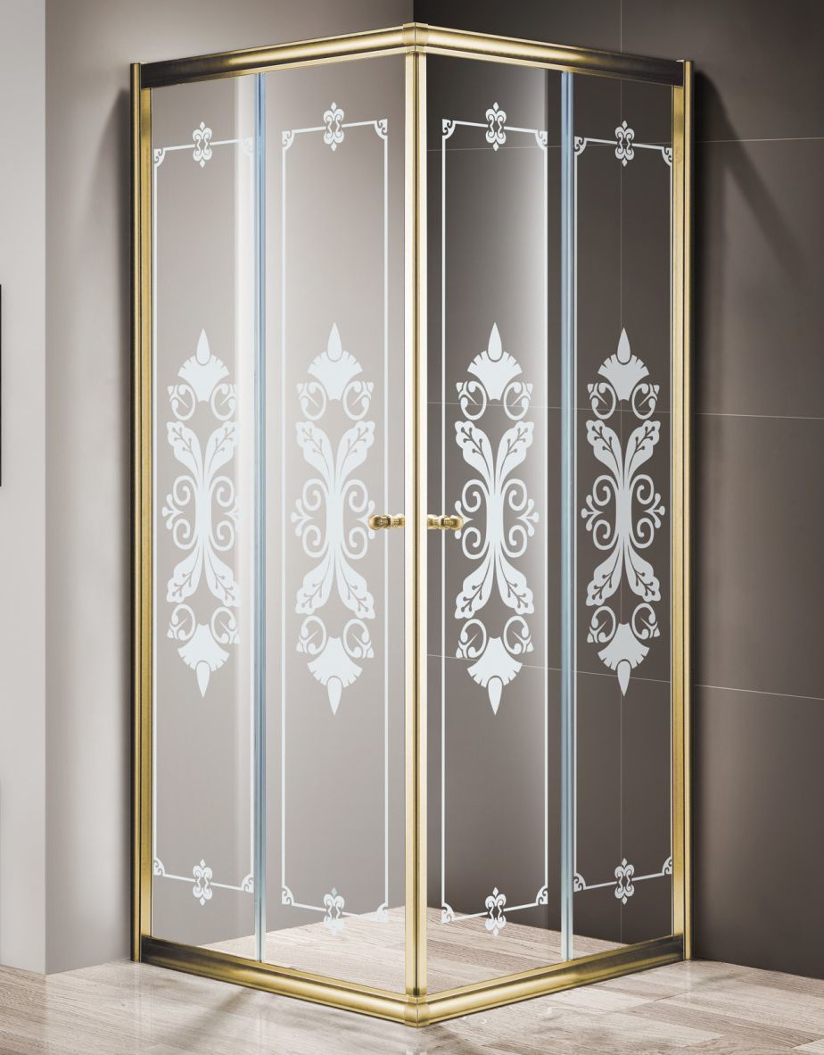 Душевое ограждение Cezares 80х80 см GIUBILEO-A-2-80-SCORREVOLE-CP-G, золото/прозрачное/узор