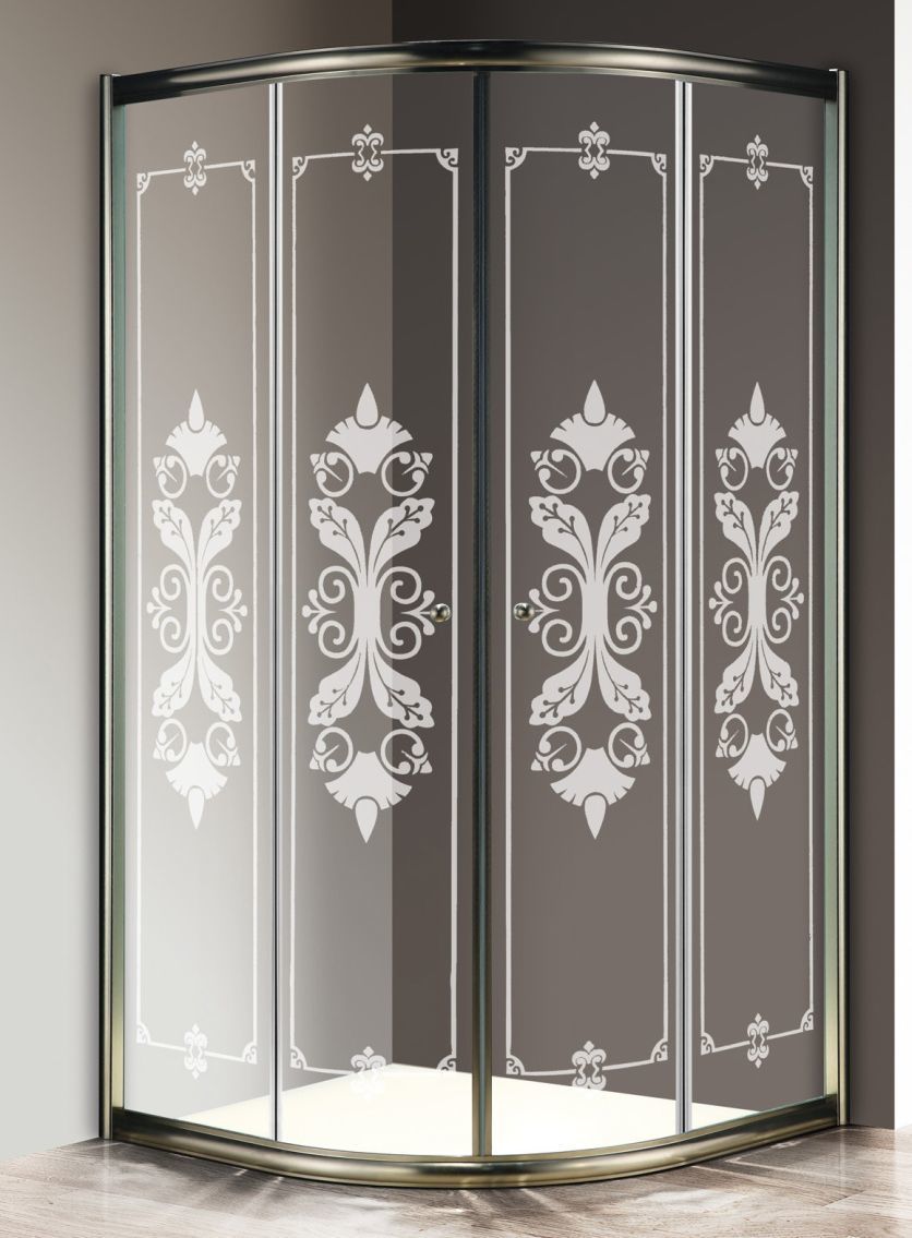 Душевое ограждение Cezares 100х100 см GIUBILEO-R-2-100-SCORREVOLE-CP-Br, бронза/прозрачное/узор
