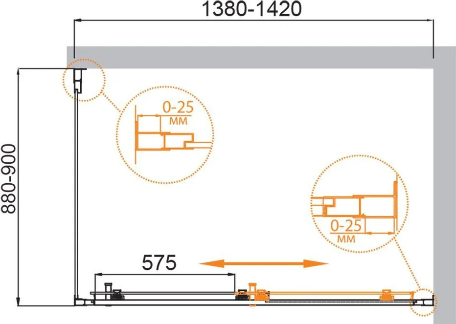 - Регулировка ширины предусмотрена за счет боковых профилей