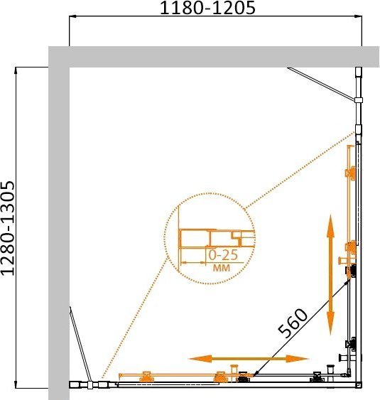- Регулировка ширины предусмотрена за счет боковых профилей