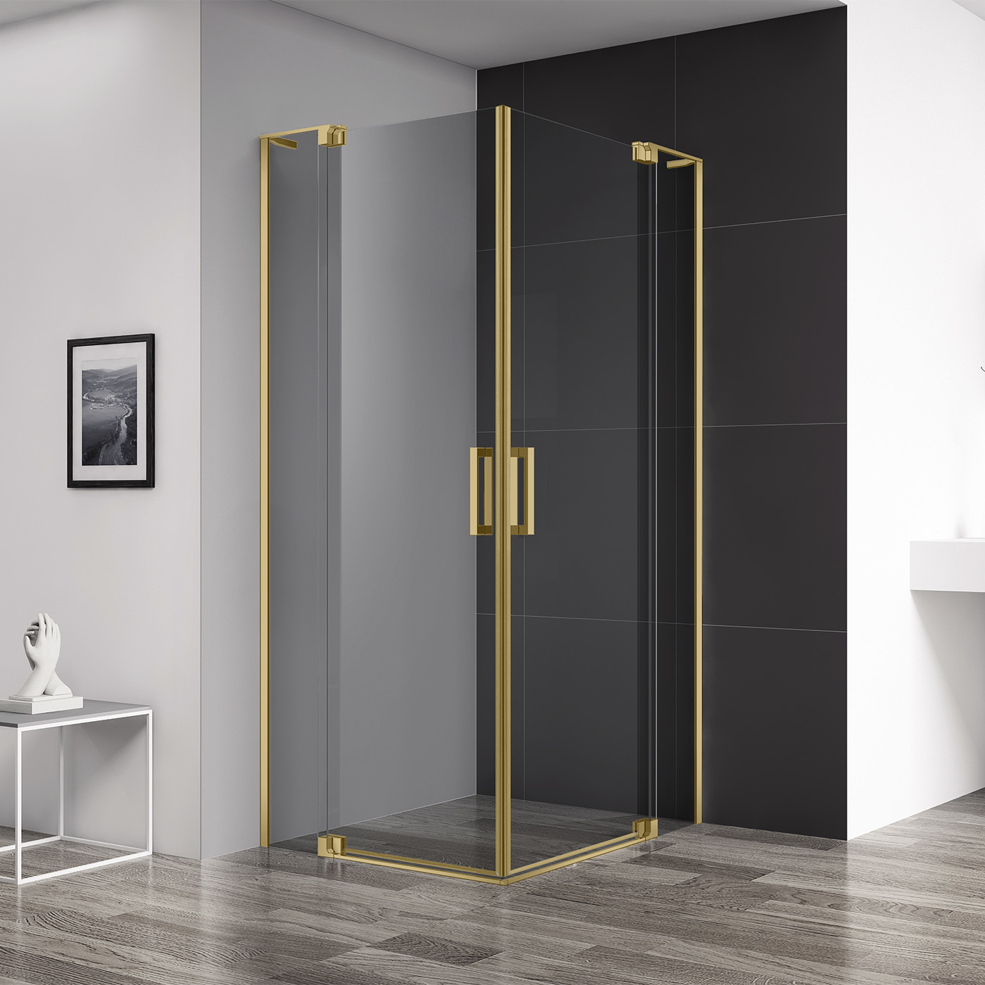 Душевое ограждение Cezares SLIDER-A-2-80/90-GRIGIO-BORO (800-900)x(800-900)x1950 мм, цвет стекла - тонированное, 8 мм, цвет профиля - брашированное золото. Поддон приобретается отдельно.