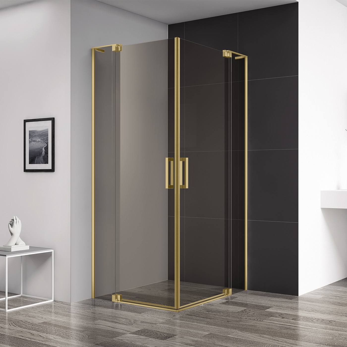 Душевое ограждение Cezares SLIDER-A-2-90/100-BR-BORO (900-1000)x(900-1000)x1950 мм, цвет стекла - тонированное, 8 мм, цвет профиля - брашированное золото. Поддон приобретается отдельно.