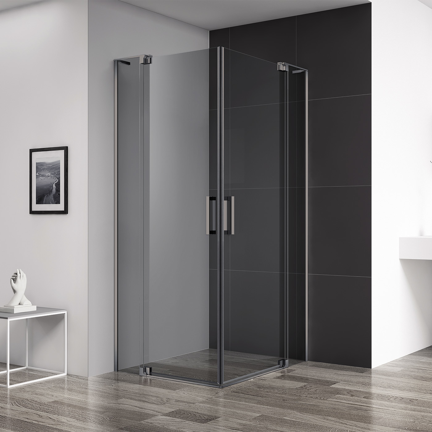 Душевое ограждение Cezares SLIDER-A-2-90/100-GRIGIO-GM (900-1000)x(900-1000)x1950 мм, цвет стекла - тонированное, 8 мм, цвет профиля - оружейная сталь. Поддон приобретается отдельно.