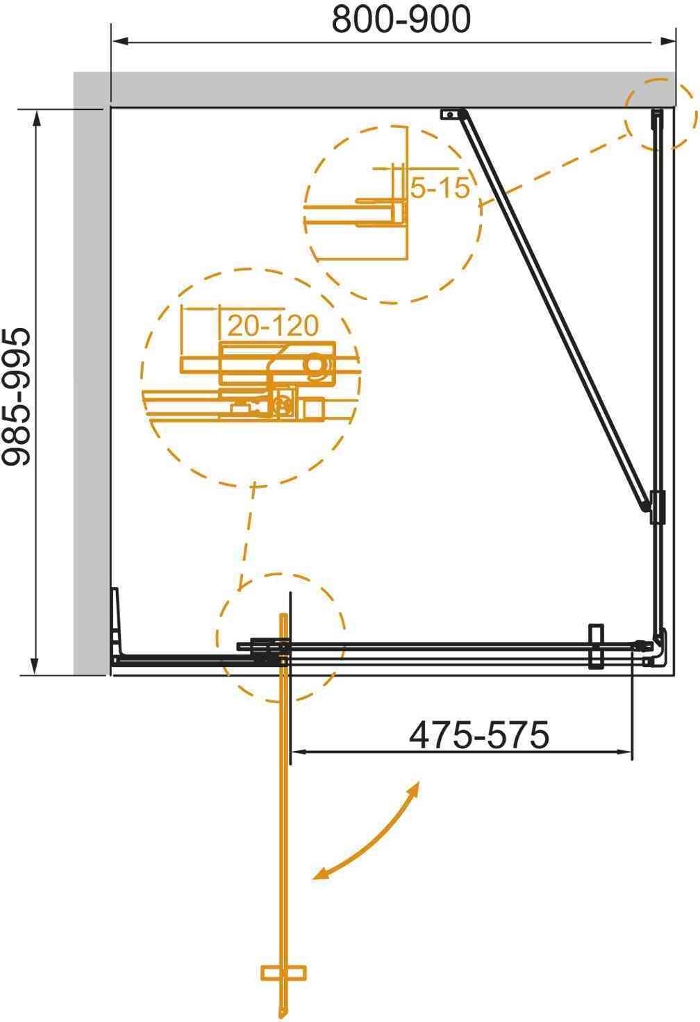 - Конструкция петли позволяет регулировать ширину входа душевого ограждения в диапазоне 10 см