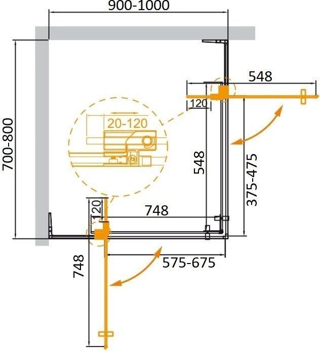 - Конструкция петли позволяет регулировать ширину входа душевого ограждения в диапазоне 10 см