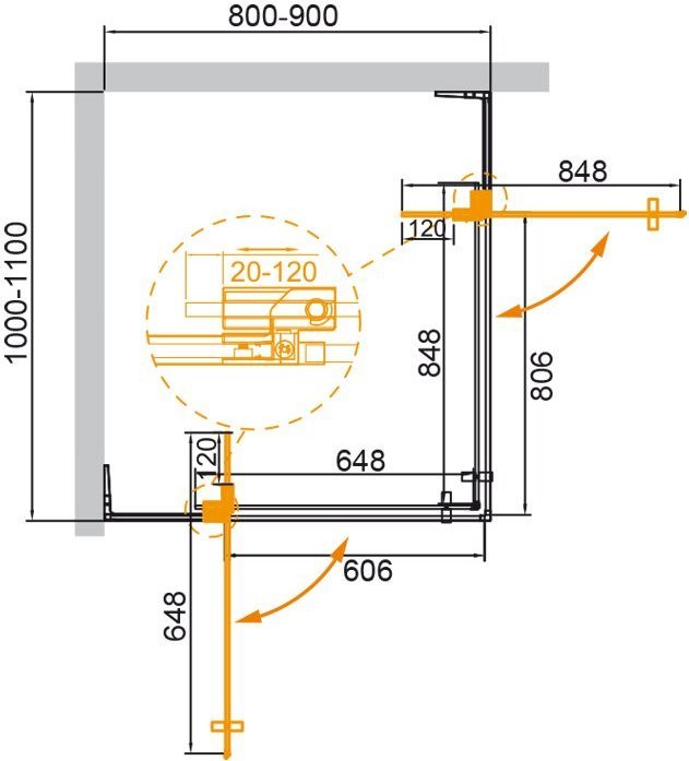 Душевое ограждение Cezares Slider AH-2 (800-900)х(900-1000)x1950 мм, цвет стекла - прозрачное (8 мм), цвет профиля - хром, поддон приобретается отдельно.