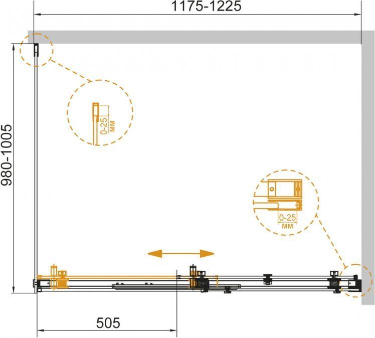 Характеристики Душевое ограждение Cezares (STYLUS-SOFT-AH-1-120/100-C-Cr)