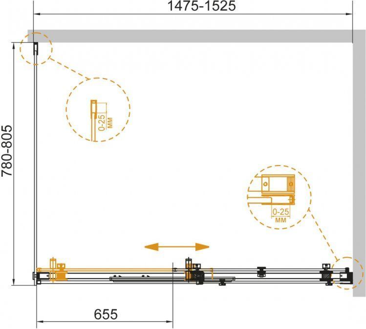 Характеристики Душевое ограждение Cezares (STYLUS-SOFT-AH-1-150/80-C-Cr)