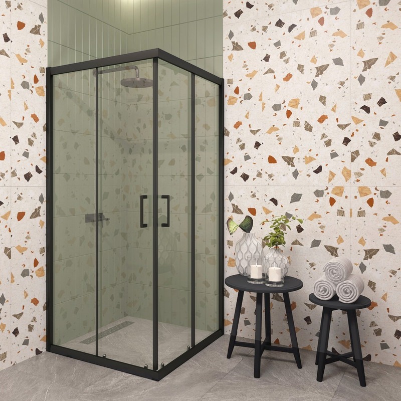 Душевое ограждение EvaGold EG220030 900х900х1900 мм, стекло - прозрачное, 5 мм, профиль - чёрный матовый. Ширина входа 500 мм. Поддон приобретается отдельно.