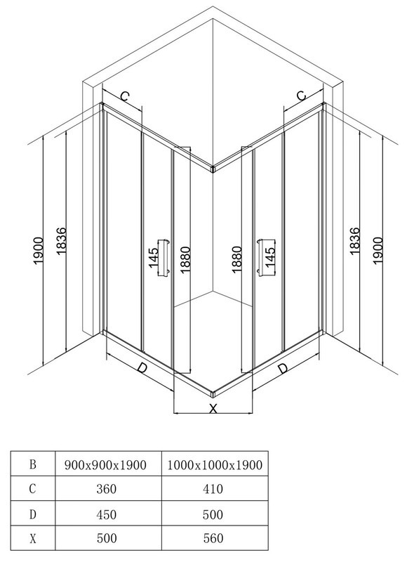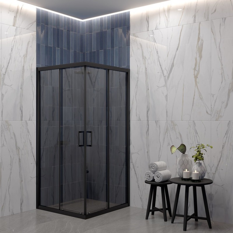 Душевое ограждение EvaGold EG220069 900х900х1900 мм, стекло - тонированное, 5 мм, профиль - чёрный матовый. Ширина входа 500 мм. Поддон приобретается отдельно.