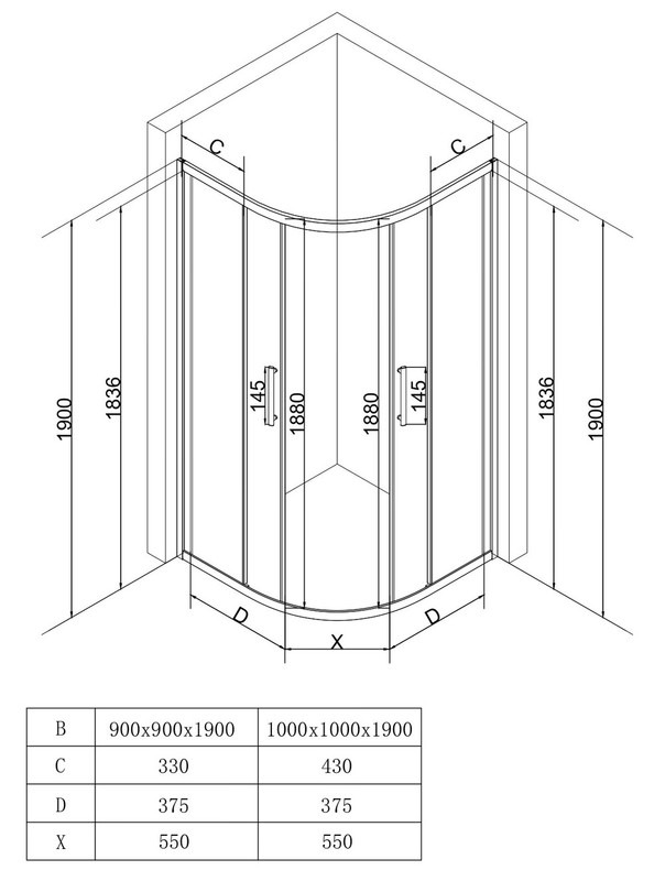Душевое ограждение EvaGold EG220071 900х900х1900 мм, стекло - тонированное, 5 мм, профиль - чёрный матовый. Ширина входа 550 мм. Поддон приобретается отдельно.